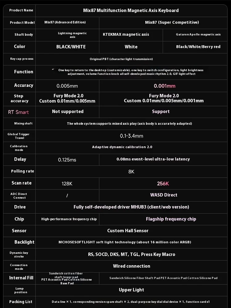 Mchose Mix87 Magnetic Swtich Keyboard Wired Gaming Keyboard 8K+256K Esport 0.08ms Low Latency Custom E-Sports Gamer Accessories