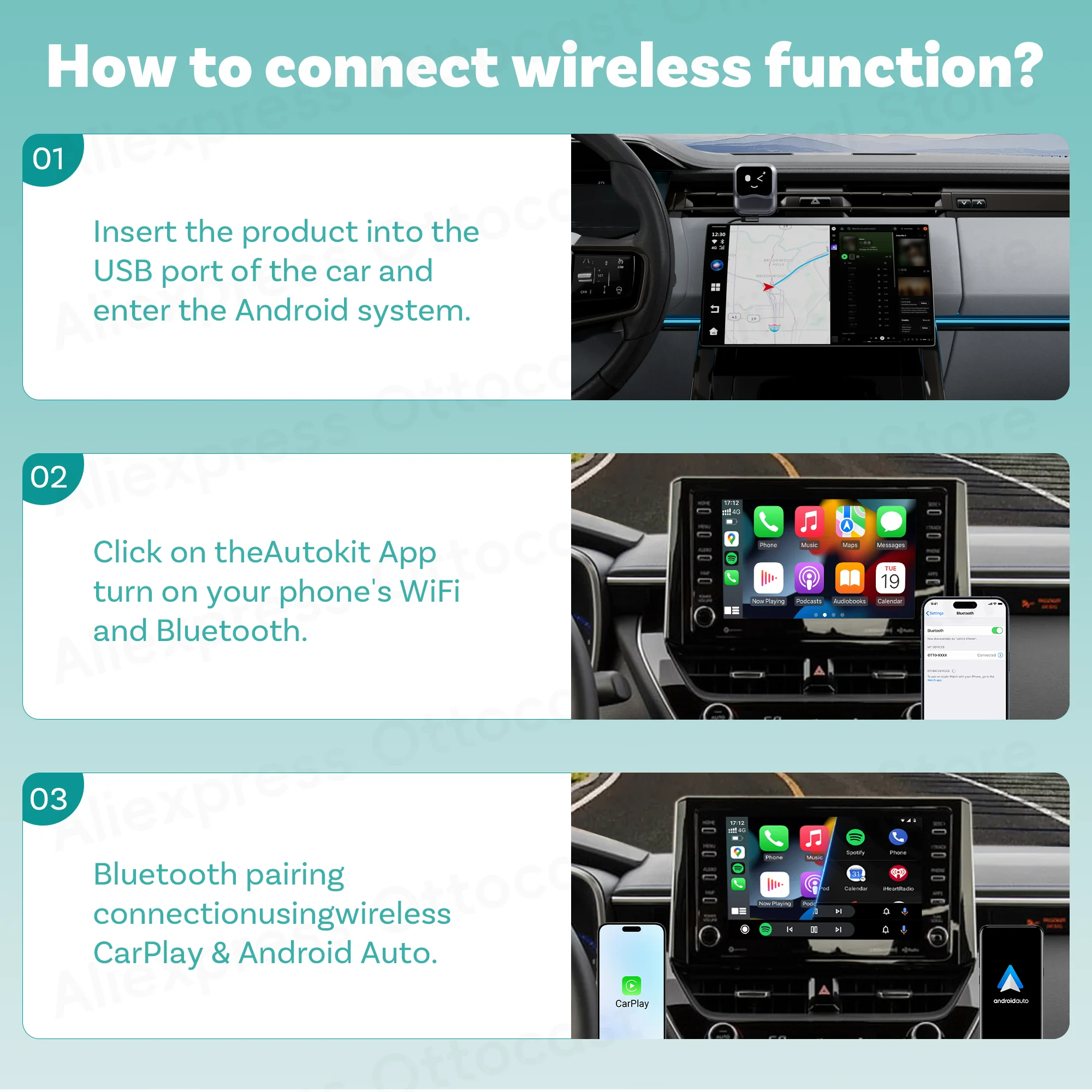 ③ Enjoy instant wireless CarPlay/Android Auto connectivity—no cables needed!